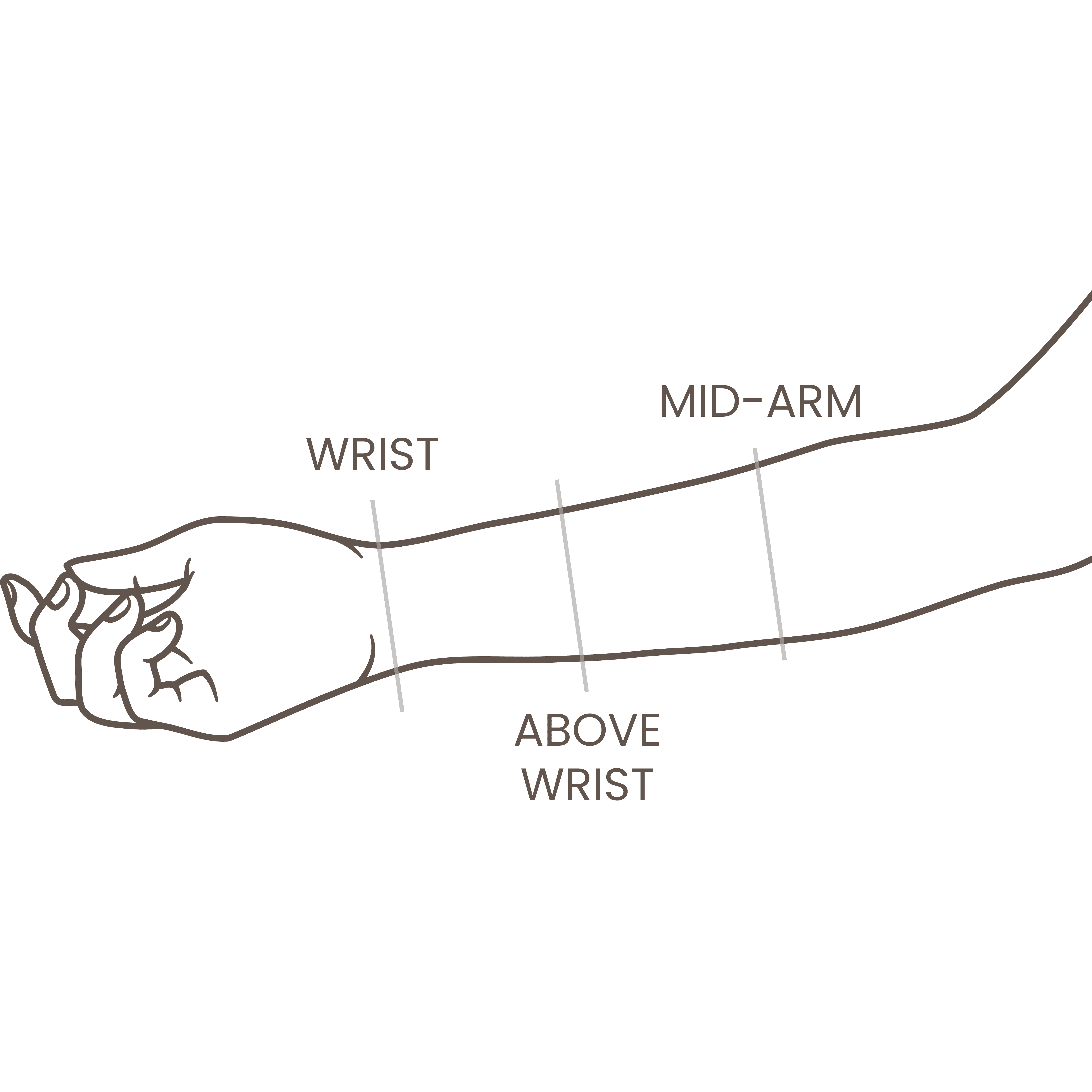 We offer wrist, above-wrist, and mid-arm lengths. See the guide below for a visual reference: